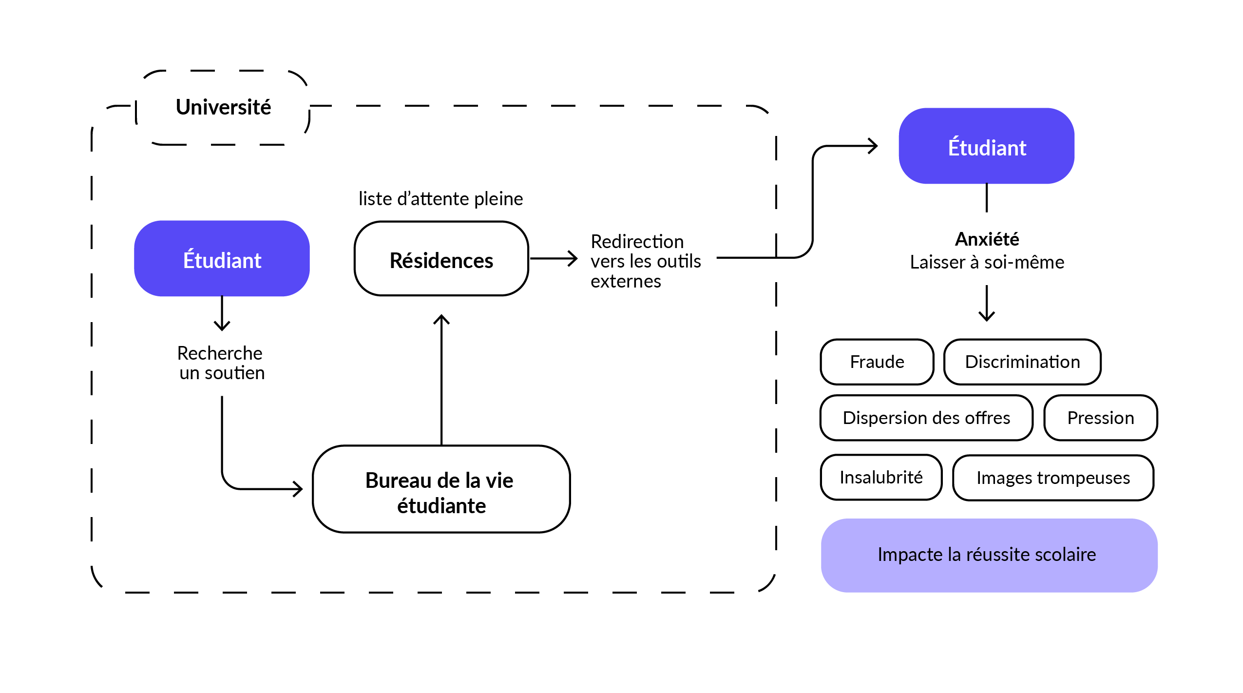 Une solution holistique axée sur l'utilisateur, visant à simplifier le processus de recherche de logement chez les étudiants, tout en renforçant le soutien communautaire et la confiance au sein de l'environnement académique des institutions universitaires québécoises.